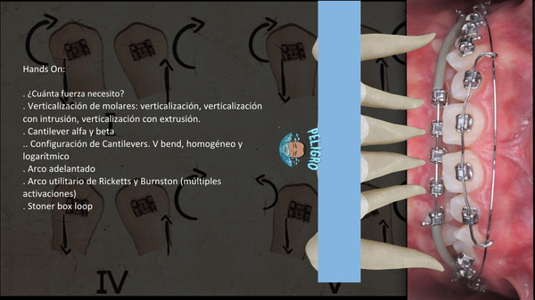 - ¿Cuánta fuerza necesito? - Verticalización de molares: verticalización, verticalización con intrusión, verticalización con extrusión. - Cantilever alfa y beta. - Configuración de Cantilevers. V bend, homogéneo y logarítmico. - Arco adelantado. - Arco utilitario de Ricketts y Burnston (múltiples activaciones). - Stoner box loop