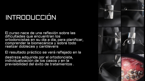 El curso nace de una reflexión sobre las dificultades que encuentran los ortodoncistas en su día a día, para planificar, comprender la biomecánica y sobre todo realizar dobleces y cantilevers. El resultado práctico se verá reflejado en la destreza adquirida por el ortodoncista, individualización de los casos y en la previsibilidad del éxito de tratamientos.